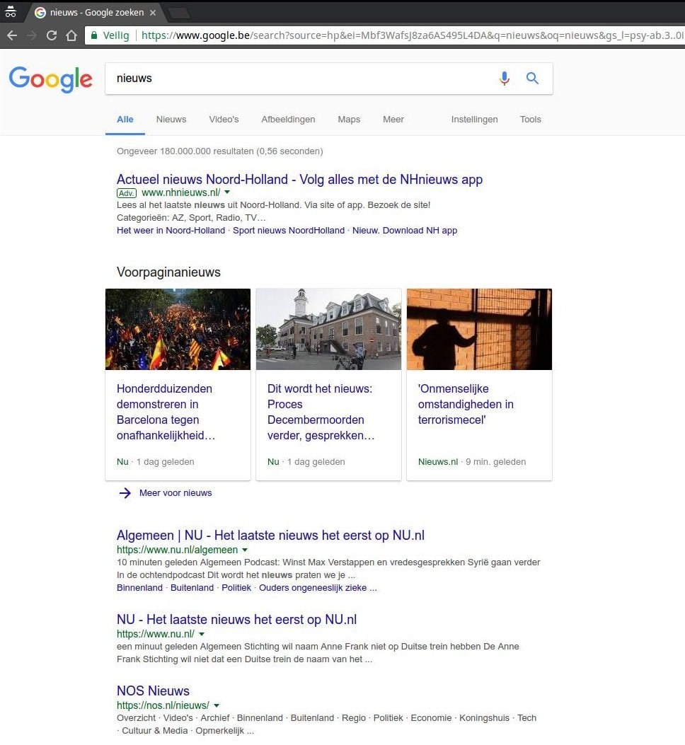 Andersom geldt hetzelfde: Als je een Nederlander bent die op vakantie is in België zal je daar dus lokale zoekresultaten te zien krijgen als je iets opzoekt, ook al zit je op Google.nl.