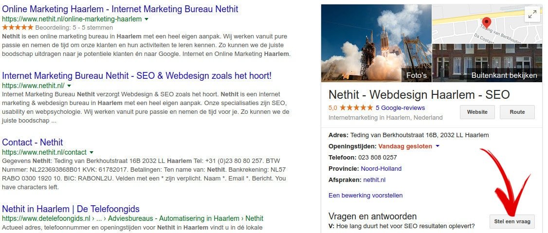 De vraag en antwoord functie voor Google Mijn bedrijf is sinds een tijdje ook beschikbaar in de gewone Google desktop resultaten. Voorheen was deze functie enkel te zien op mobiele apparaten. In oktober 2017 was Google al bezig met het testen van de functie op desktop en sinds 1 december 2017 is de functie permanent ingevoerd.