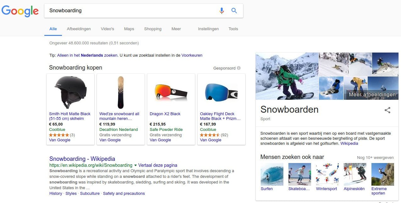 Voorbeeld van gerelateerde inhoud in Google.nl: